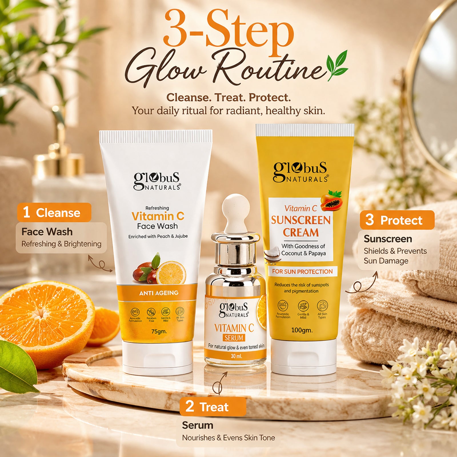 Globus Naturals Vitamin C Face Serum, for Natural Glow & Even Skin Tone, 30 ml